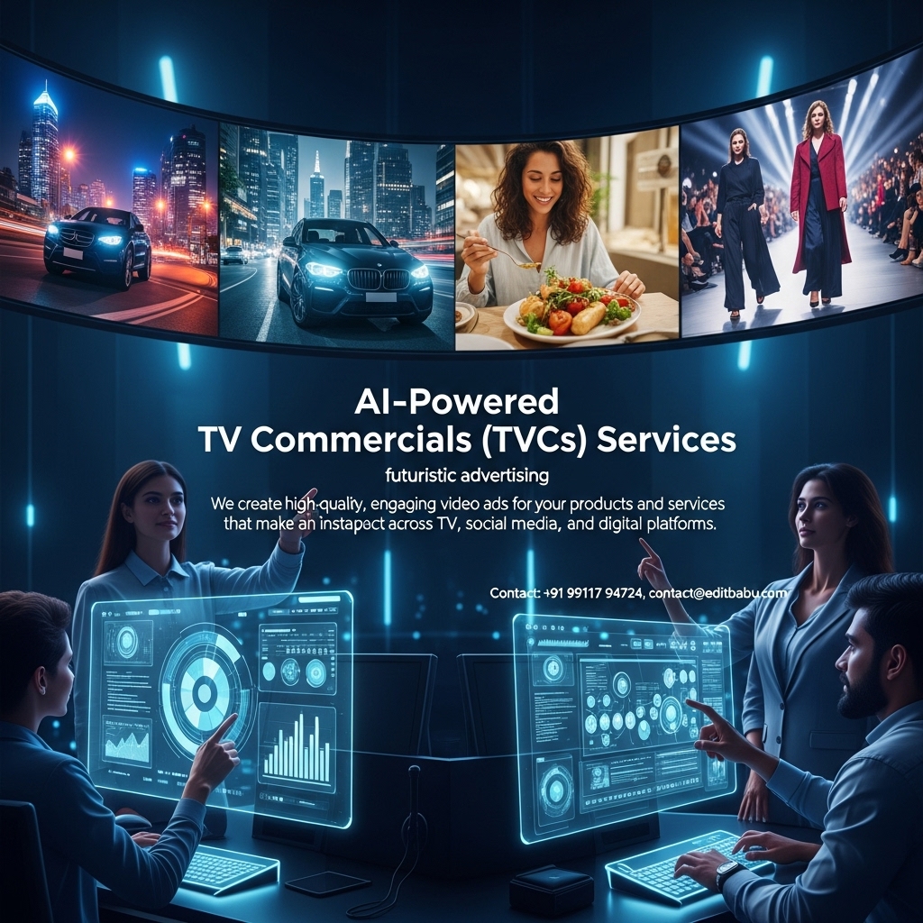 At editbabu.com, our AI-powered TV commercials give you the full advantage of futuristic advertising. We create high-quality, engaging video ads for your products and services that make an instant impact across TV, social media, and digital platforms.