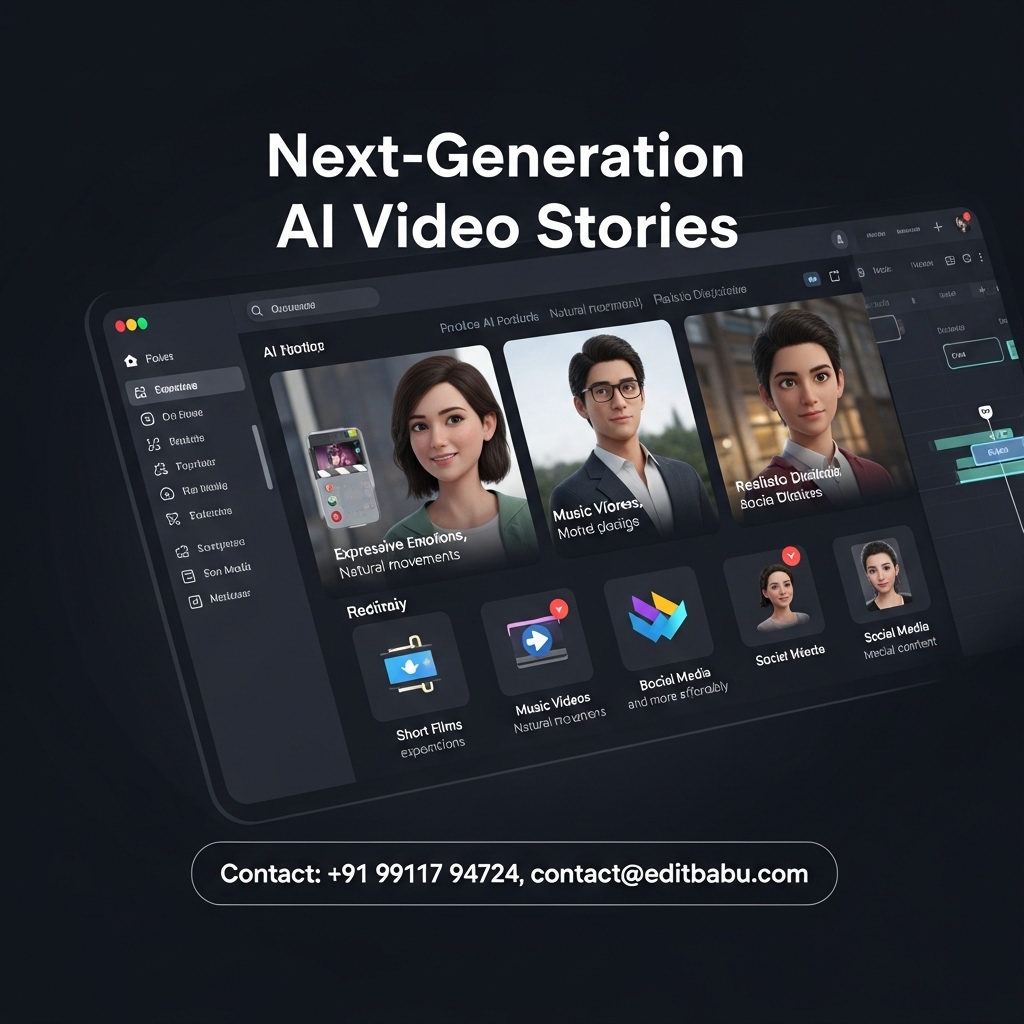 Unleash the power of storytelling — without actors, cameras, or complex production setups. At editbabu.com, we create next-generation AI Video Stories that help brands and creators turn their ideas into cinematic, engaging, and emotional visual experiences.